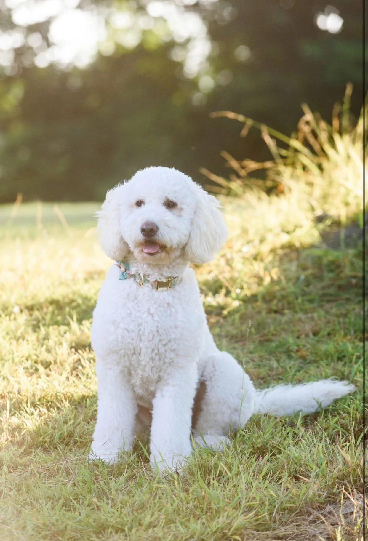 Cali is a sweet and spirited girl with a touch of playful elegance. She wears a shorter coat by choice, but her coat beautifully soft. It’s slightly curly texture gives her a signature look. Cali has an easygoing personality and a natural charm that shines through in every wag of her tail.